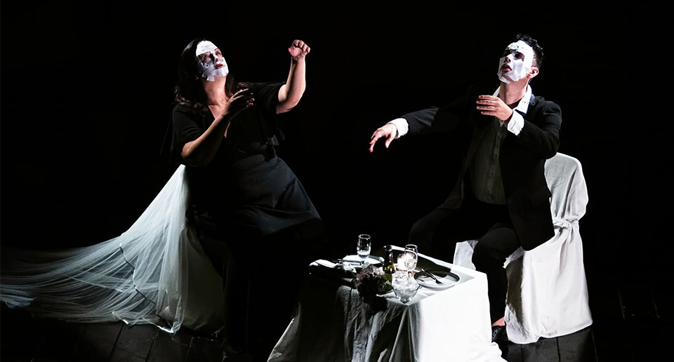 La pièce, prodotta da Akerusia danza, è una rivisitazione scenica, coreografica e teatrale, ispirata al vissuto di una coppia di amanti che ritornano in vita per invitarci al loro banchetto di nozze, rendendoci partecipi della loro storia d’amore.